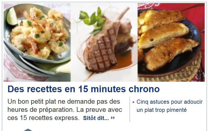 Aucune excuse pour ne pas se faire les bons petits plats dont parlait Jeanne dans mon précédent billet ! Il faut 15 minutes chrono, c’est-à-dire pas une de plus, chronomètre en main ! Qui n’a pas un quart d’heure à consacrer à la cuisine ?