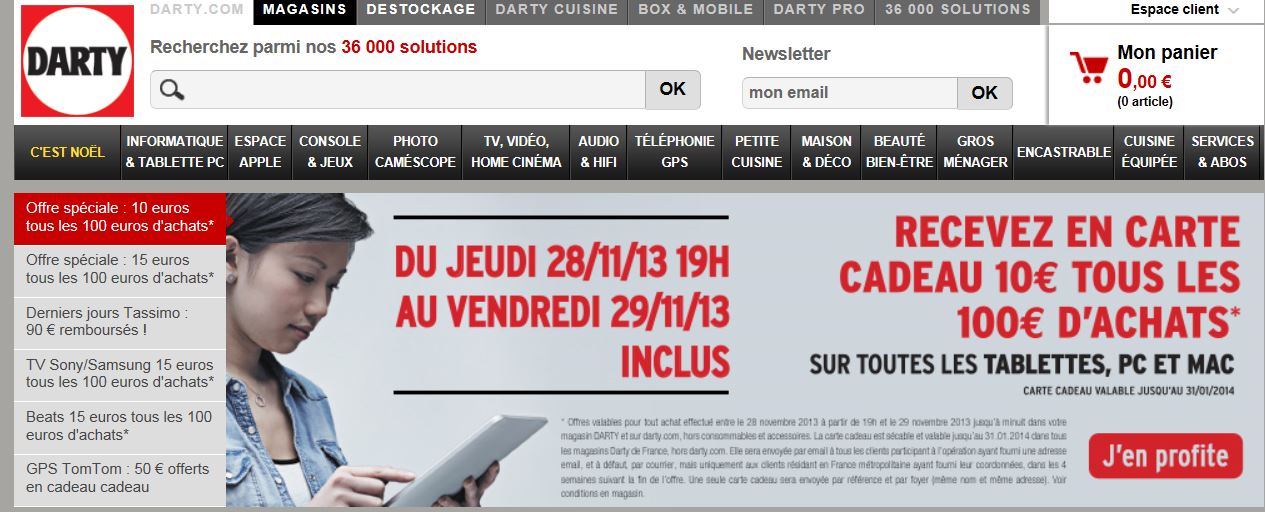 Ceux qui font leurs courses sur internet ont peut-être remarqué que des enseignes françaises affichent aujourd’hui des réductions sur leur site. Certaines d’entre elles ne donnent pas de raison particulière et on se dit qu’il s’agit juste de promos dont on ferait peut-être bien de profiter. (Ça, c’est pour les gens organisés qui savent déjà ce qu’ils vont offrir à Noël !)