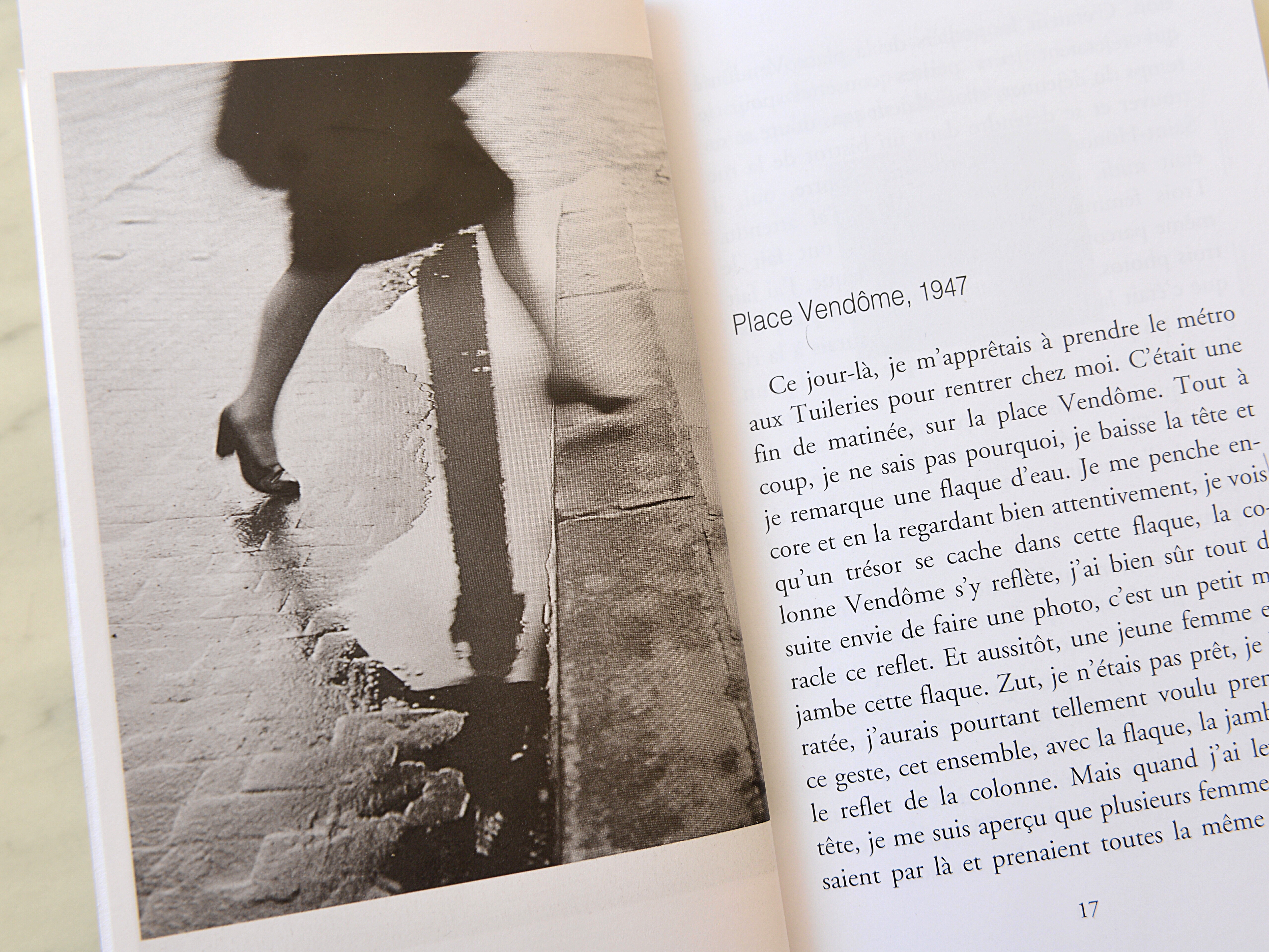 Ce jour-là, je m’apprêtais à prendre le métro aux Tuileries pour rentrer chez moi. C’était une fin de matinée place Vendôme. Tout à coup, je ne sais pas pourquoi, je baisse la tête et je remarque une flaque d’eau. Je me penche encore et en la regardant bien attentivement, je vois qu’un trésor se cache dans cette flaque, la colonne Vendôme s’y reflète, et j’ai bien sûr tout de suite envie de faire une photo, c’est un petit miracle, ce reflet. Et aussitôt, une jeune femme enjambe cette flaque. Zut, je n’étais pas prêt, je l’ai ratée, j’aurais tellement voulu prendre ce geste, cet ensemble, avec la flaque, la jambe et le reflet de la colonne. Mais quand j’ai levé la tête, je me suis aperçu que plusieurs femmes passaient par là et prenaient toutes la même direction…