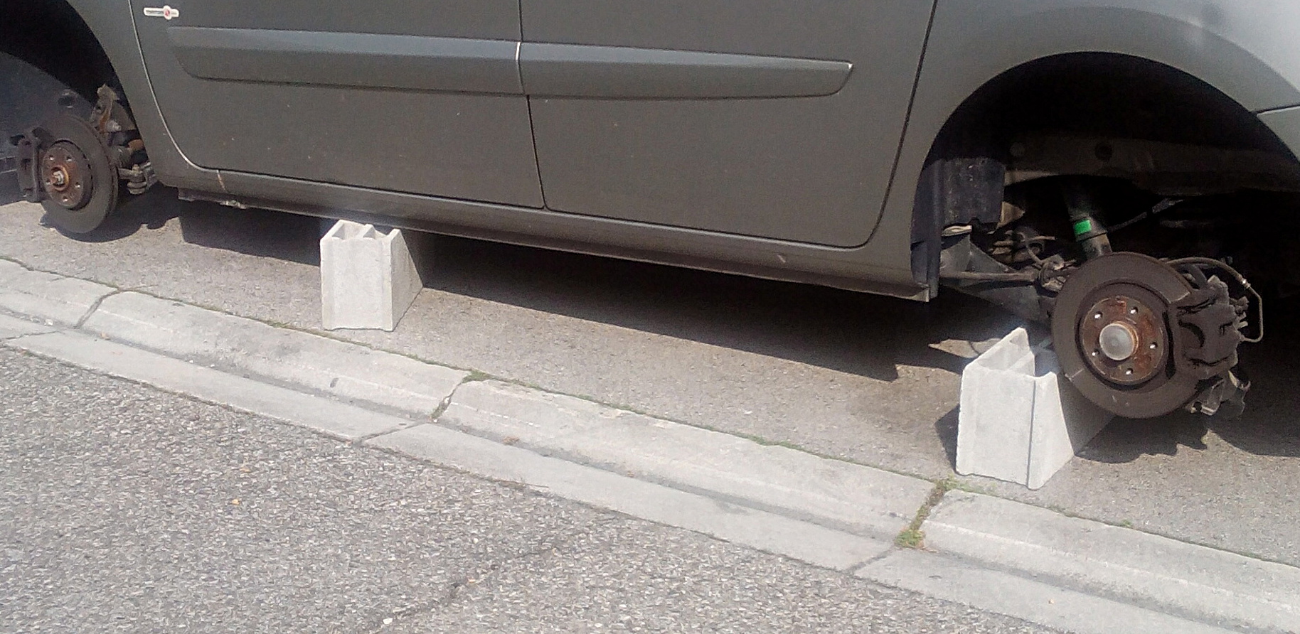 Oui, c’est exactement ce qu’on s’est dit ! Juste sous les fenêtres de notre voisin… Et en plus, deux autres voitures ont subi le même sort dans notre lotissement cette nuit-là. Donc ils sont très organisés. Peut-être sont-ils aussi rapides (et entraînés) que les gars qui changent les roues pendant les grands prix de Formule 1 !