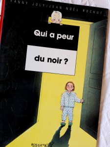 Ce que je me demande tout d’un coup, c’est s’il s’agit toujours d’une petite fille dans cette série de petits livres sur les peurs ! Nous en avions un autre, sur la peur de l’orage, avec une fille aussi. Les filles, des trouillardes ? 🙂