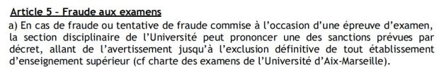 Les sanctions vont d’un simple avertissement à une exclusion de notre université ou, encore plus grave, de toutes les universités pour une durée de cinq ans :