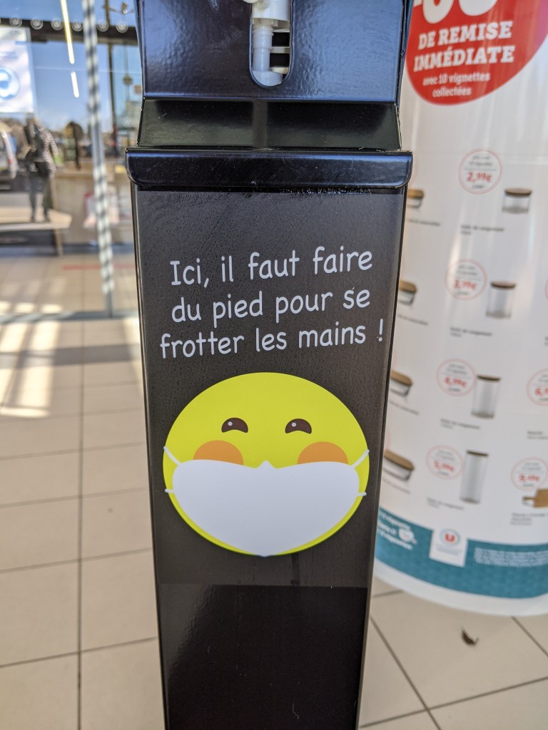 En deux ans de pandémie, combien de fois nous sommes-nous passé du gel hydroalcoolique sur les mains ? Au début, c’était une denrée (1) rare et convoitée ! Aujourd’hui, il y en a à l’entrée de tous les magasins : du simple flacon posé sur une table de fortune (2) à des systèmes sans contact qui détectent nos mains tendues, tout est possible. Et entre les deux, il y a les distributeurs qu’on actionne grâce à un petit levier ou mieux, en appuyant du pied sur une pédale.
