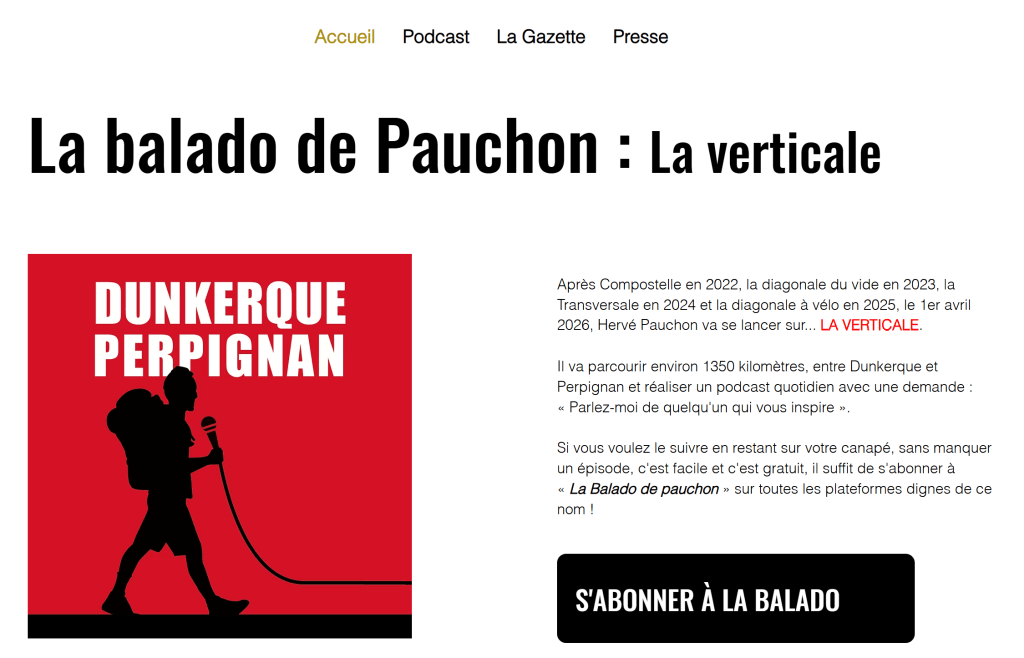 Je me dépêche de publier ce billet en ce 31 mars 2026 pour vous rappeler qu’Hervé Pauchon remet ça pour la cinquième année consécutive ! Eh oui, il repart à pied à travers la France, du nord au sud cette fois, selon une vraie verticale, qui relie sur la carte le département du Nord à celui des Pyrénées Orientales.