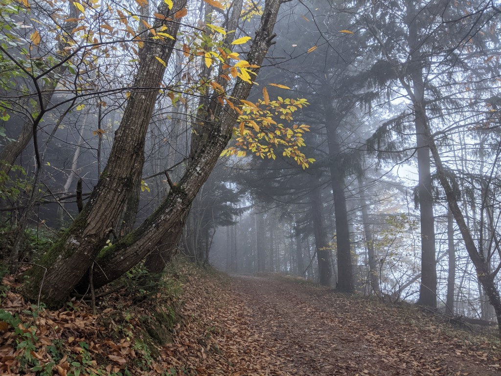 Le brouillard est très épais par endroits. On ne voit même plus le chemin.