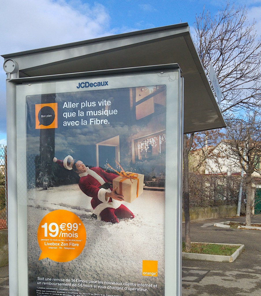 Alors la question, légèrement apitoyée : « Tu n’as pas la fibre ? » est devenue un grand classique (4). LA fibre, et même, comme dans la publicité ci-dessus, la Fibre avec une majuscule ! Pas besoin d’expliquer, LA Fibre, tout le monde sait de quelle fibre il s’agit, même si personne ne saurait vraiment expliquer comment ça fonctionne. L’assurance que ça ne va pas ramer (5), pas bugger, pas se déconnecter, que ça va aller vite. Plus vite que la musique, comme le dit cette pub, détournant, comme souvent, une expression de notre langue.